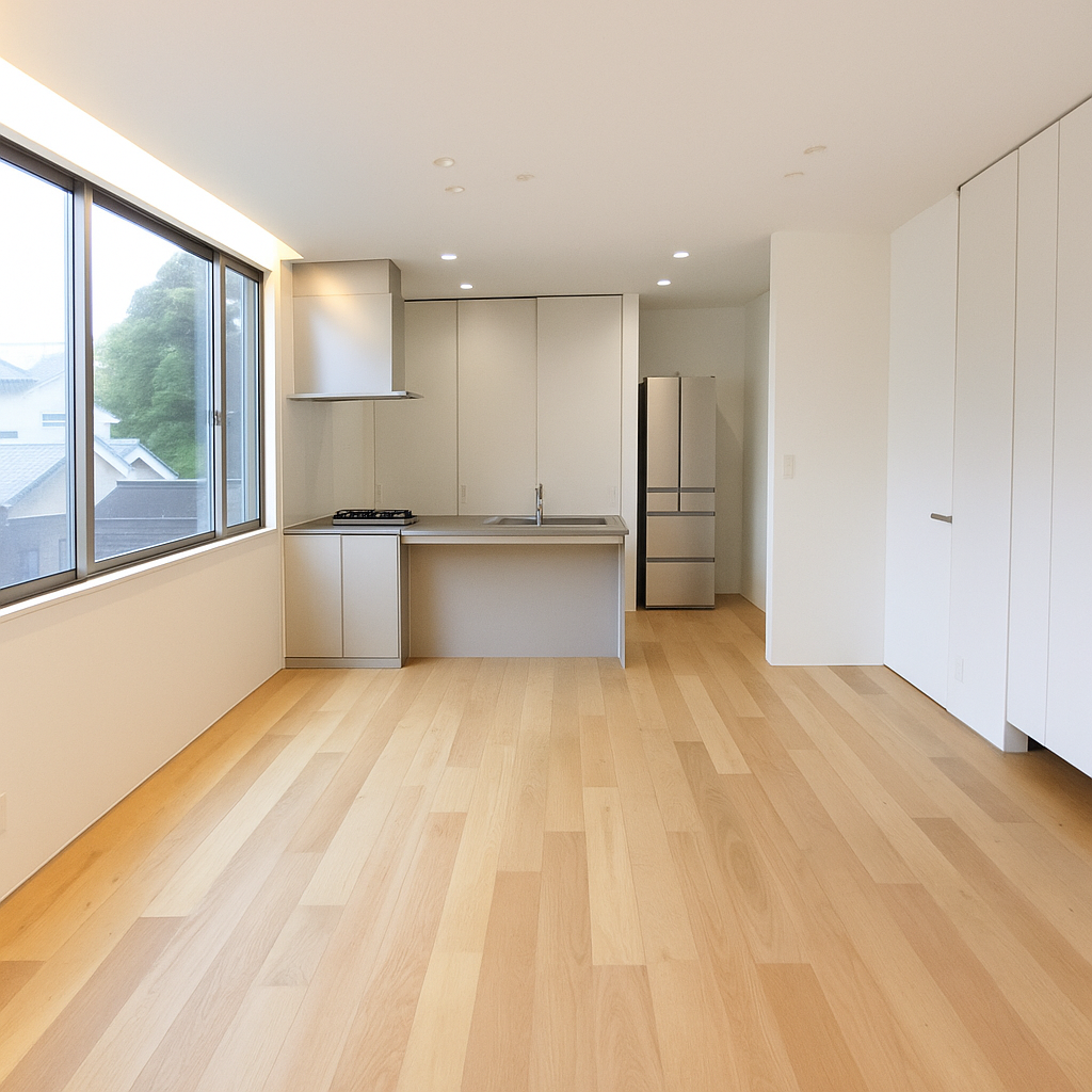 南面に大きな窓を設け、光をたっぷり取り込んだ明るく開放感のある広いLDKを、二世帯の各戸で実現できることができました。