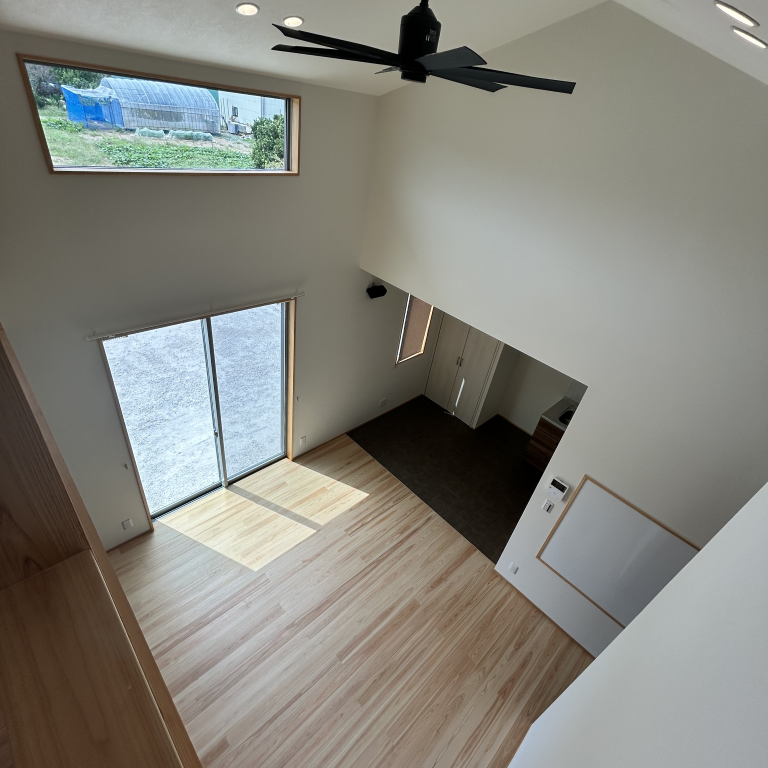 24坪の多機能な平屋。水回り〜寝室の最短動線と、7坪のロフト収納で空間を徹底活用。無駄を削ぎ落としたシンプルなデザインが、現代のライフスタイルに心地よくフィットします。