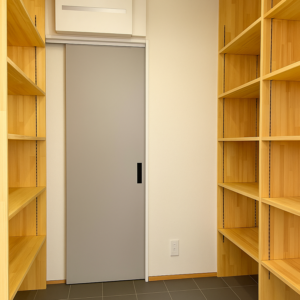 木の温もりと整った棚が美しい、使いやすさを考えた収納空間。