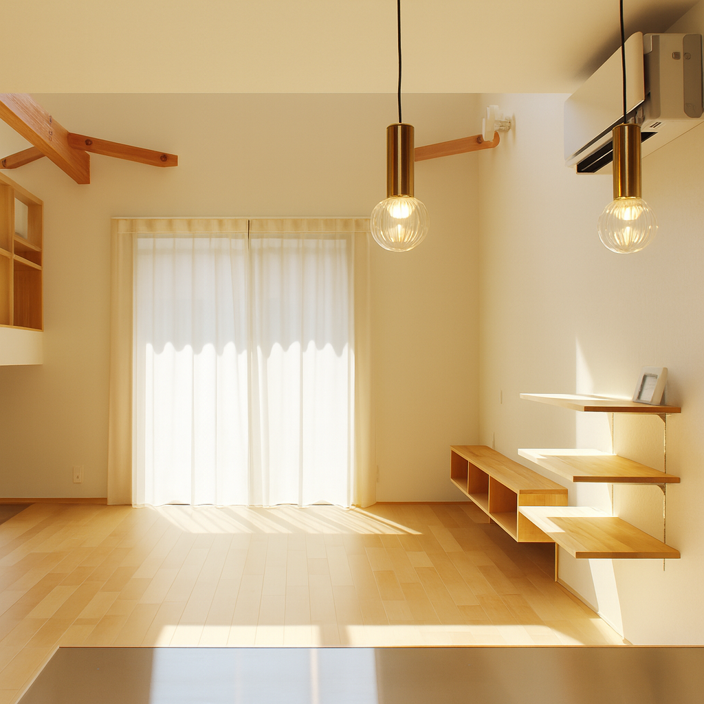 上下の空間を活かした開放的な設計。自然光がやさしく差し込む。