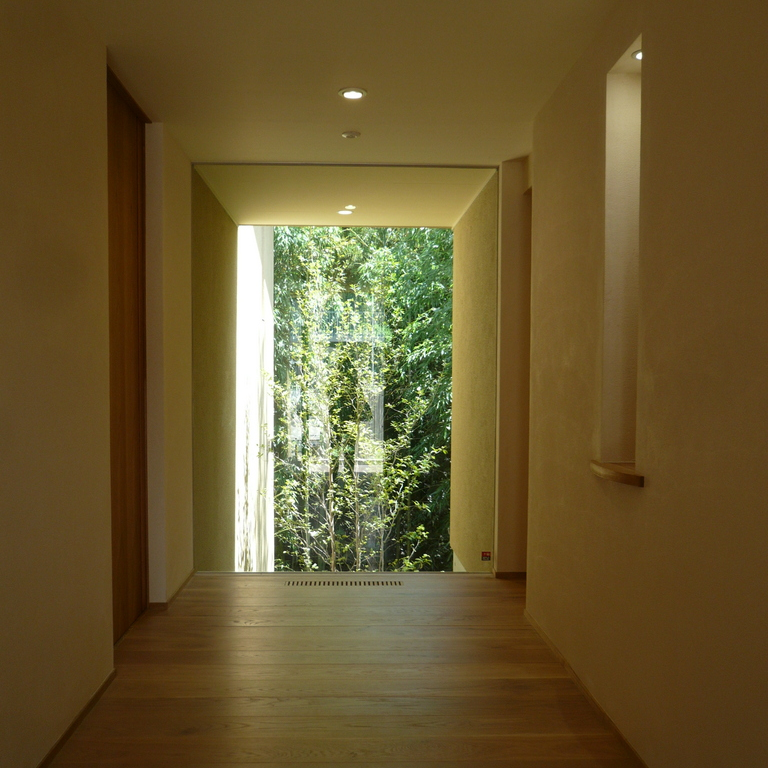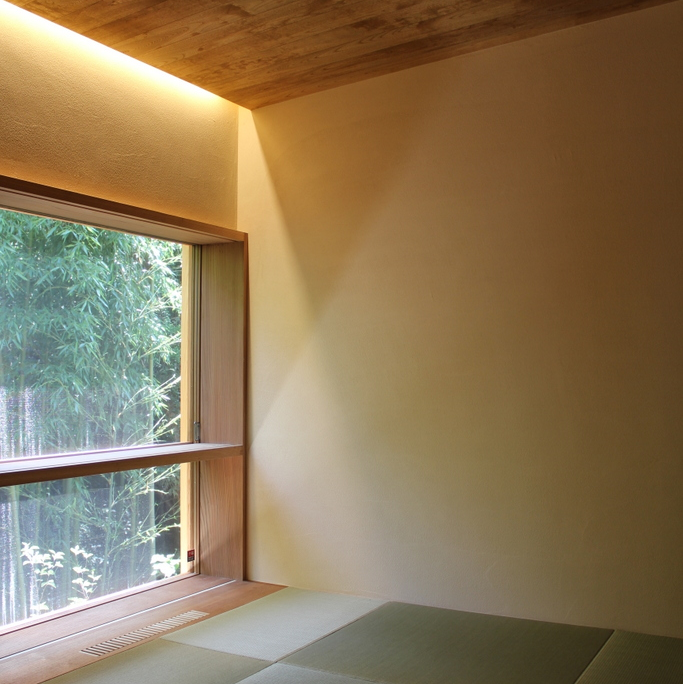 竹林の急な斜面を「欠点」ではなく、活かした計画です。
