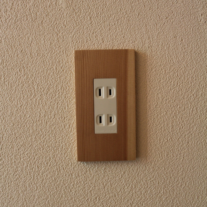 温かみある木製コンセントプレートが、自然素材の塗り壁と調和。生活感が出やすい場所も、細部までデザインにこだわることで、空間全体に心地よいナチュラルな雰囲気を演出。日々の暮らしに溶け込む上質さが魅力です。