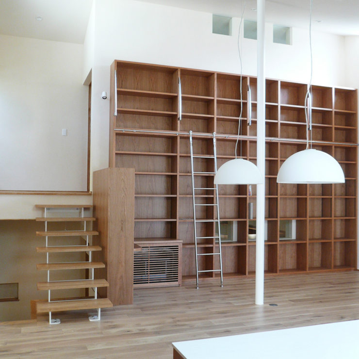 木の温もりを感じる空間に、グランドピアノが美しく映えます。存在感のある木製引き戸は、空間を柔軟に仕切り、音の響きにも配慮。明るい木材の階段とフローリングが統一感を出し、開放的な雰囲気を演出。音楽を日常に取り込む豊かな生活を提案します。