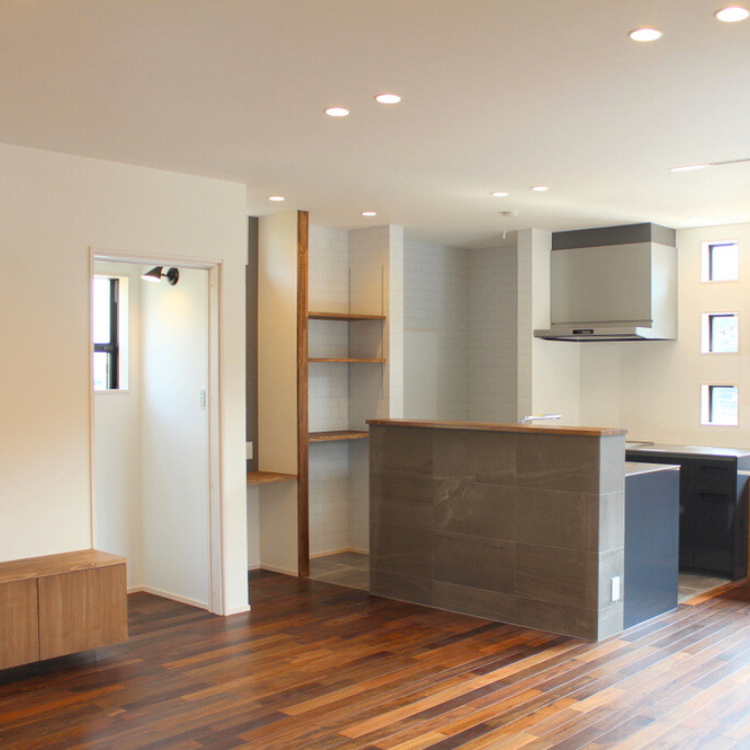 シンク側のカウンター壁面には、調湿・脱臭効果を備えたエコカラットを採用。意匠性の高さに加え、キッチン特有の悩みである匂いや湿気にも配慮した、実用的な素材選びとなっています。